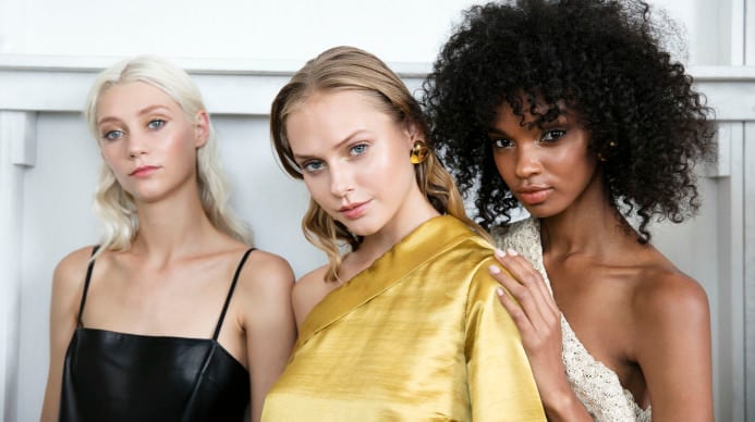 True to the theme, a classic low ponytail was given a modern twist with the addition of belt-buckle ties that were produced for the TIBI Spring/Summer 2017 show at Industria Studios, specifically for the hair.