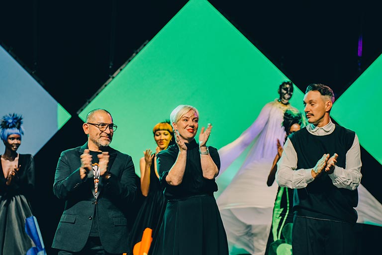 Global Creative Director Antoinette Beenders’ inspiration for NAHA (North American Hairstyling Awards) in Las Vegas was found right at the heart of Aveda — it’s literally written right underneath our logo! “The art and science of pure plant and flower essences” was the key to Antoinette and Team Aveda’s collection, which featured brightly-colored hair pieces crafted to resemble lush, exotic blooms.