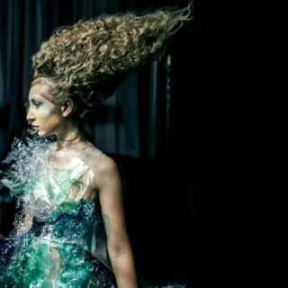 The artistic tribute featured models in distinct hair styles that appeared liquid-like when they walked the runway wearing dresses of acrylic that evoked the look of splashes. Eco glitter, sequins and recycled crystals adorned intricate hair styles that included finger waves and geometric cuts colored in vivid hues by Ian Michael Black, Global Artistic Director, Hair Color.